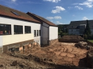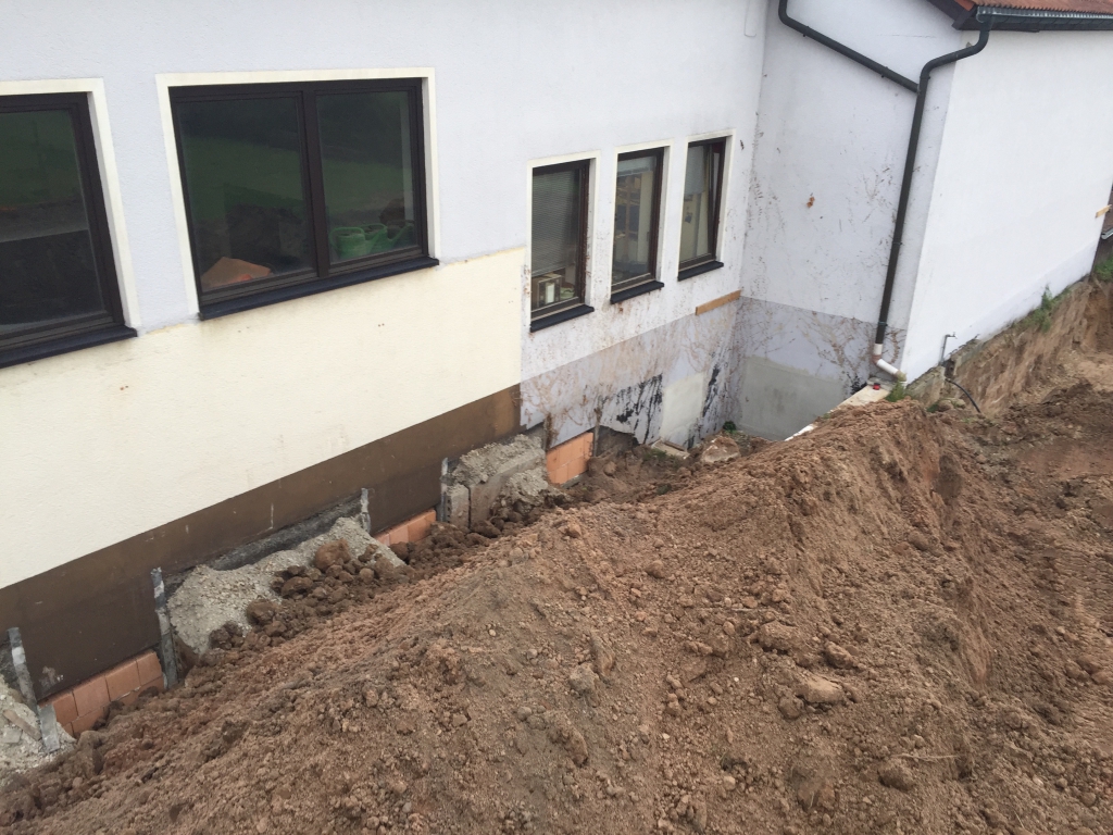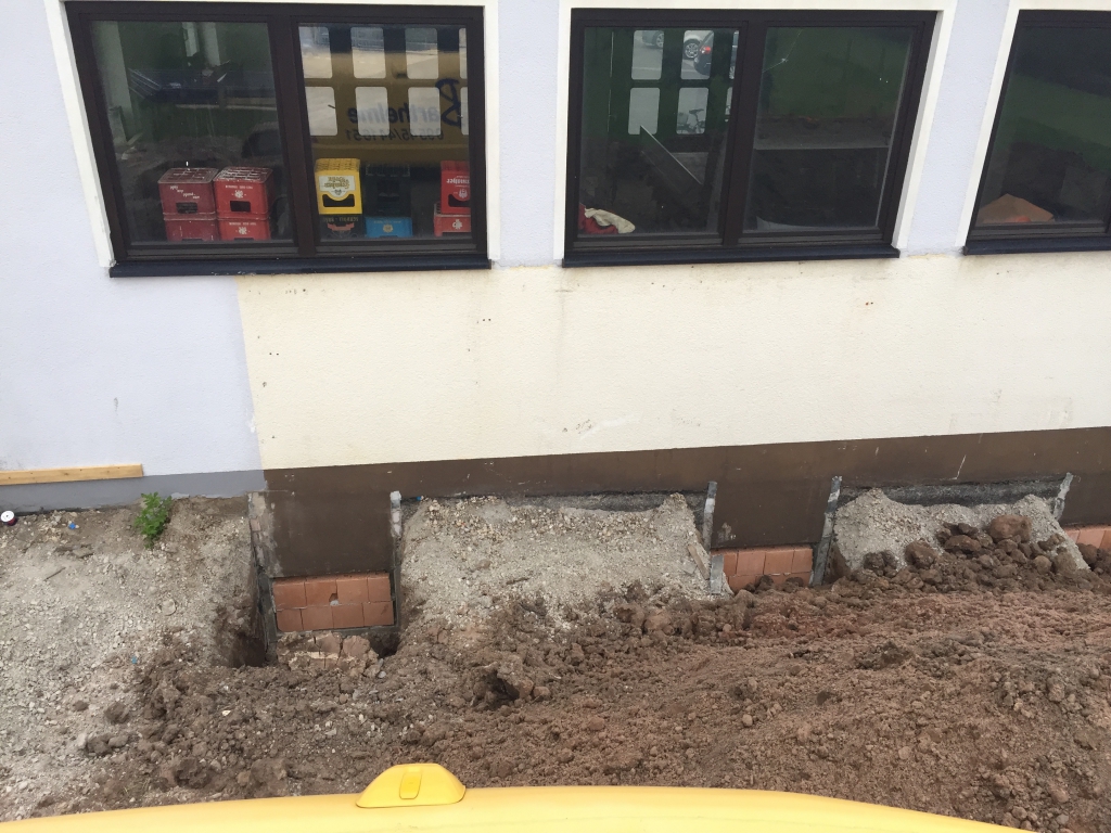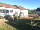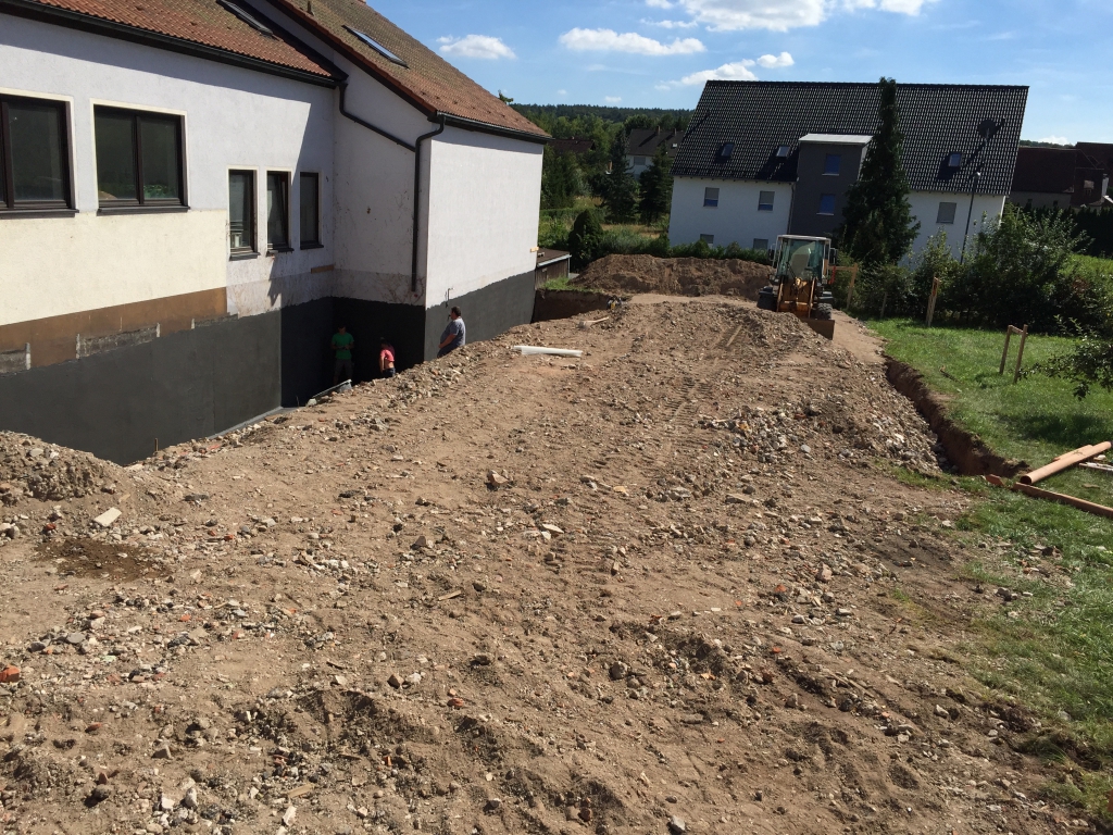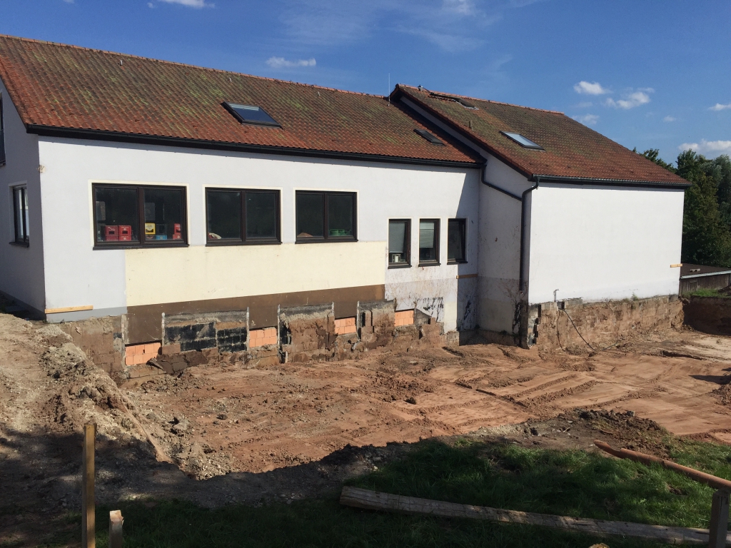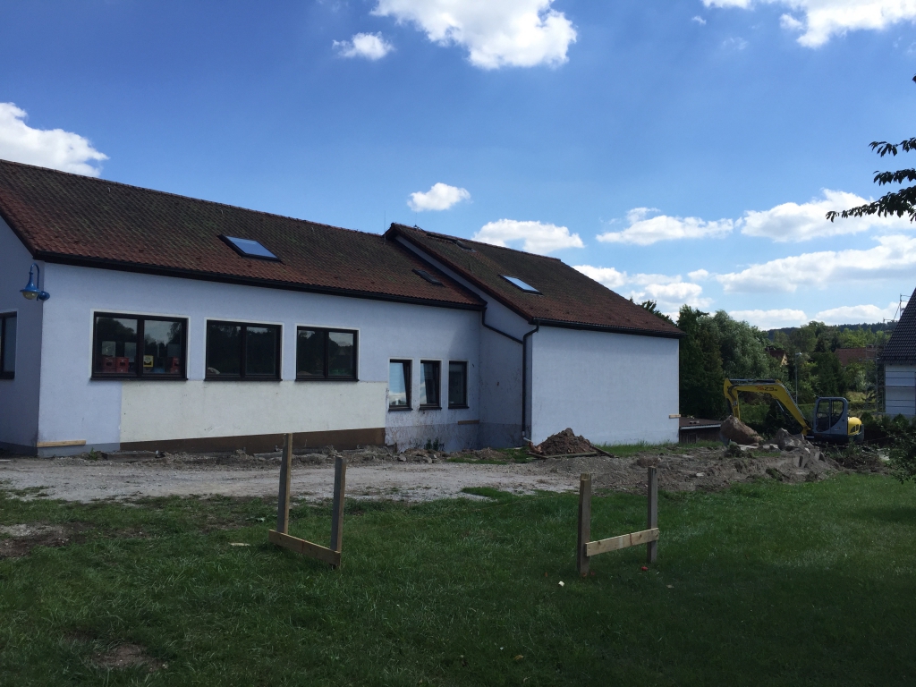 Mittlerweile haben auch die Arbeiten am Gerätehaus begonnen. Die Baugrube wurde ausgehoben, damit der Untergrund für das den Anbau vorbereitet werden kann.