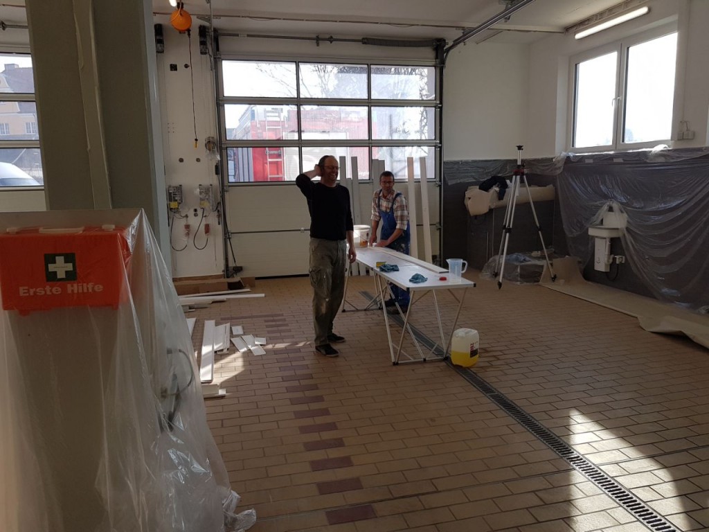 Neben der Fahrzeughalle wurde auch das Treppenhaus und die Umkleidekabinen neu gestrichen. Die Vorarbeiten dafür haben schon in den letzten Wochen begonnen und konnten nun endlich abgeschlossen werden. Die Fertigstellung des Gerätehausumbaus rückt somit immer näher.
