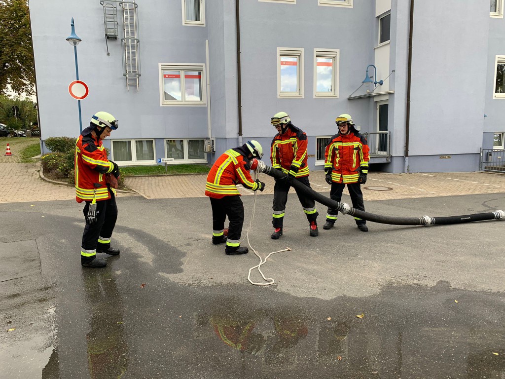 Aufgabe war es, einen Löschangriff mit drei C-Strahlrohren aufzubauen und mit diesen dann Eimer umzuspritzen. Zudem musste eine Saugleitung bestehend aus vier A-Saugschläuchen gekuppelt und am LF16 angeschlossen werden. Diese Aufgaben müssen mit Zeitvorgabe ausgeführt werden, somit muss jeder Handgriff sitzen.