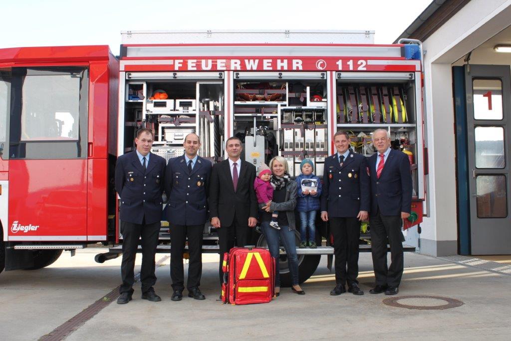 Christbaumaktion 2016_8Am Samstag den 9.1.2016 sammelte die Feuerwehr Heroldsbach/Thurn mit zahlreichen fleißigen Helfern die Christbäume aus Heroldsbach und Thurn ein. Jeder Bürger konnte seinen Tannenbaum gegen eine kleine Spende abgeben. Die gesammelten Spenden, bei denen ein stattlicher Betrag von 2900 € zusammen kam, wurde am Donnerstag den 21.1.2016 durch die Kommandantur der beiden Feuerwehren an die DKMS, vertreten durch Mirco und seiner Mutter , überreicht.