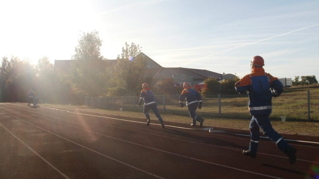 Im Feuerwehrteil muss ein Löschangriff vom offenen Gewässer gezeigt und eine 120 m Schlauchleitung verlegt werden. Kugelstoßen und ein 1500 m Staffellauf bilden den sportlichen Teil. Zum Schluss muss sich die Gruppe Fragen aus dem Feuerwehrwesen und dem Bereich des Allgemeinwissens stellen. Die Leistungsbewertung erstreckt sich auf gute persönliche Haltung, geordnetes und geschlossenes Auftreten, auf Schnelligkeit und Ausdauer, Körperstärke und auf ausreichendes feuerwehrtechnisches- und allgemeines Wissen. Hierbei ist die erfolgsversprechende Gemeinschaftsleistung der Gruppe am wichtigsten, denn der Stärkere hilft den Schwächeren. Jonas Kaiser, Jonas Firsching und Sarina Kufper von der Feuerwehr Heroldsbach/Thurn und Pascal Frank, Jonas Gößwein und Sebastian Häcklein von der Feuerwehr Oesdorf können sich ab jetzt die Deutsche Jugendleistungsspange an ihre Uniformen heften.