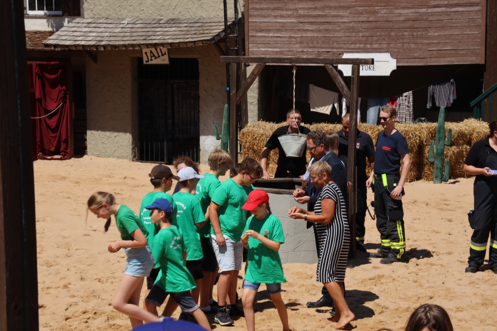 Gegen 10:00 Uhr ging es vom Gerätehaus zu Fuß los Richtung Park. Nach der Anmeldung der Mädels und Jungs wurden alle in zwei Gruppen aufgeteilt, um die einzelnen Stationen, die quer über den Park verteilt waren zu absolvieren. Zwischenzeitlich wurden auch die einzelnen Fahrgeschäfte ausprobiert. Natürlich konnten die Feuerdinos die unterschiedlichen Aufgaben bravourös meistern, sodass sie gegen 14 Uhr in der Westernstadt die verdienten Abzeichen und Urkunden entgegennehmen konnten. Danach ging es noch einmal in die Wasserrutsche und im Anschluss daran traten die Feuerdinos gegen 15:30 Uhr den Heimweg zum Gerätehaus an. Wir sagen herzlichen Glückwunsch und sind sehr stolz auf unsere Kleinsten, dass sie an diesem Event teilgenommen haben.