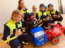 Verschiedene Gegenstände wurden mit einem Schutzanzug der Feuerwehr, durcheinander auf den Boden gelegt. Die Kids konnten die zur Feuerwehr gehörenden Teile raussuchen und die Betreuer erklärten für welchen Einsatz die Geräte benötigt werden. Ein weiter Punkt war ein sogenanntes „Gefahrenhaus“. Das Bild wurde ausgelegt und die Kinder zeigten die Gefahrenquellen im Haus auf und erklärten kurz warum diese so gefährlich sind. Nächste Station „Fünf- W-Fragen“ Notruf absetzen, mit den Kindern wurde die Notrufnummer für Feuerwehr und Rettungsdienst einstudiert und das Absetzen eines Notrufs geübt. "Sicherheit durch Sichtbarkeit" zeigten wir den Kindern in einem abgedunkelten Raum – dort konnten die Dinos mit einer Taschenlampe auf drei Jacken leuchten, schnell konnten die Kinder erkennen, dass eine helle Kleidung am besten noch mit Reflektoren in der dunklen Jahreszeit besser wahrgenommen wird und auch für die Feuerwehr bei Nachteinsätzen und im Straßenverkehr wichtig ist. In einem weiteren Raum zeigten wir den Kindern den Einsatz einer Wärmebildkamera, die Kinder waren begeistert wie gut man zum Beispiel eine Wärmequelle trotz „Rauch“ auffinden konnte. Fahren mit dem Feuerwehrauto war natürlich auch ein Höhepunkt. Im Außenbereich wurde noch ein Unfall im Straßenverkehr mit einem PKW und LKW kindergerecht simuliert und die Aufgaben der Feuerwehr bei einem solchen Einsatz aufgezeigt. Zum Schluss durften die Kinder einen „echten Notruf“ über die 112 absetzen – und das erlernte aus der Gruppenstunde in die Tat umsetzen (Danke der ILS BA-FO für die Möglichkeit).