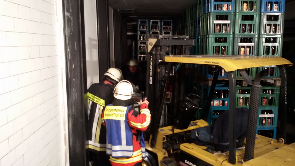 Beim Eintreffen an der Einsatzstelle zeigte sich folgendes Bild: Eine Person war unter einer Palette eingeklemmt, der Gabelstapler, welcher die Palette beförderte war defekt. Mehrere beteiligte Personen mussten betreut und kleinere Verletzungen versorgt werden. Ausserdem stellte sich heraus, dass noch eine weitere Person im Gebäude oder in der Umgebung vermisst wurde.