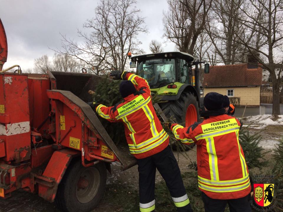 Wie in jedem Jahr sammelte die Jugendfeuerwehr und die aktive Mannschaft der Feuerwehr Heroldsbach/Thurn die ausgedienten Christbäume der Bürgerinnen und Bürger der Gemeinde Heroldsbach ein. Mit sechs Traktoren brachten ca. 40 Personen am 14.01 mehrere Anhängerladungen Christbäume zum Festplatz, um diese fachgerecht zu entsorgen. Ein Großteil der Spenden sollte in diesem Jahr dem Hospizverein Forchheim zugutekommen.