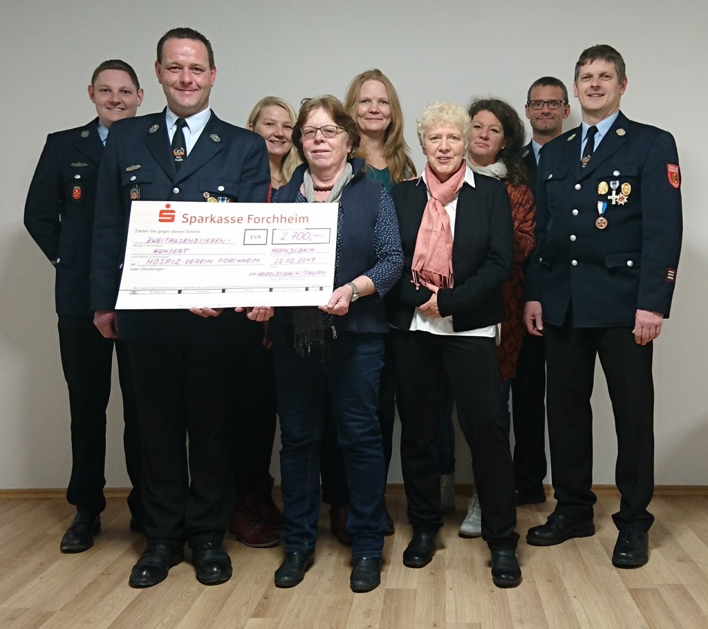 Die Freude des Vorstands über den Spendenscheck von 2700 € war immens, finanziert sich der Hospizverein Forchheim neben Mitgliedsbeiträgen vorwiegend aus Spendengeldern.