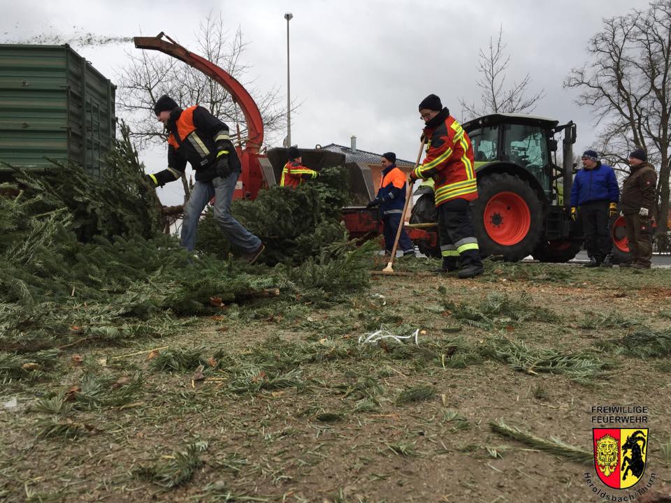 Die Aktiven und Jugendlichen der Wehr gehen von Haus zu Haus und sammeln die Christbäume in Heroldsbach und Thurn gegen eine kleine Spende ein.